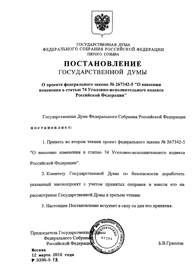 ПОСТАНОВЛЕНИЕ ГД ФС РФ от 12.03.2010 N 3336-5 ГД