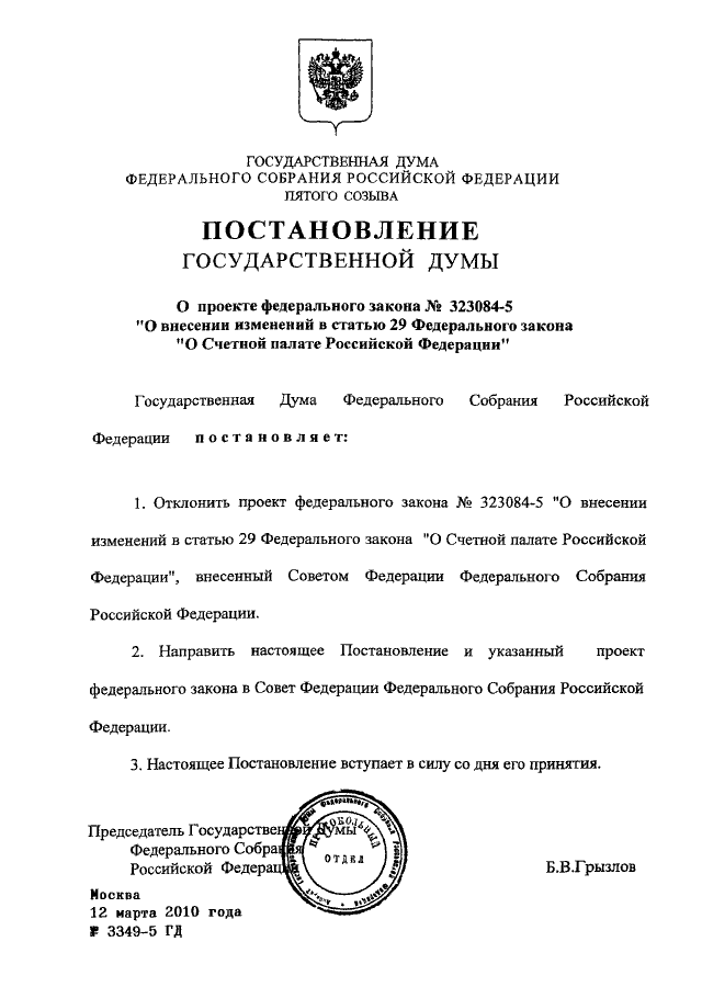 ПОСТАНОВЛЕНИЕ ГД ФС РФ от 12.03.2010 N 3349-5 ГД