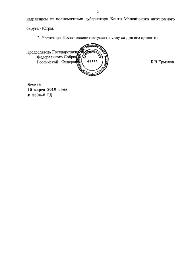 ПОСТАНОВЛЕНИЕ ГД ФС РФ от 10.03.2010 N 3304-5 ГД