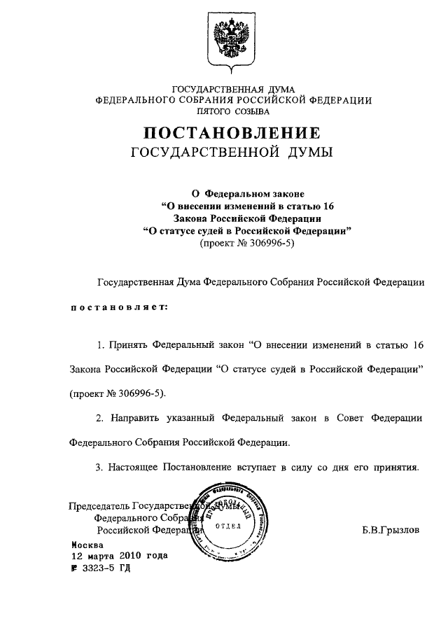 ПОСТАНОВЛЕНИЕ ГД ФС РФ от 12.03.2010 N 3323-5 ГД
