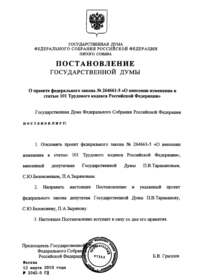 ПОСТАНОВЛЕНИЕ ГД ФС РФ от 12.03.2010 N 3342-5 ГД