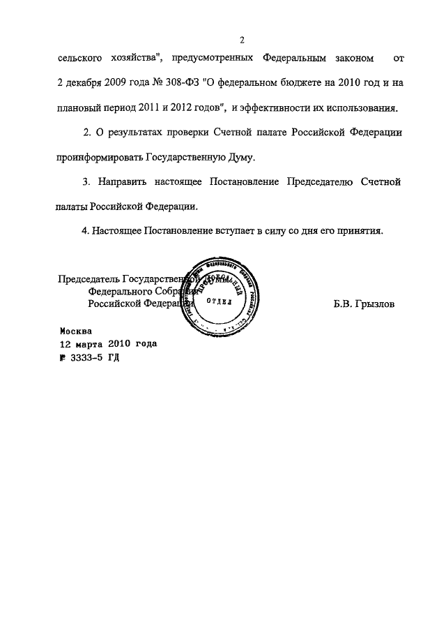 ПОСТАНОВЛЕНИЕ ГД ФС РФ от 12.03.2010 N 3333-5 ГД