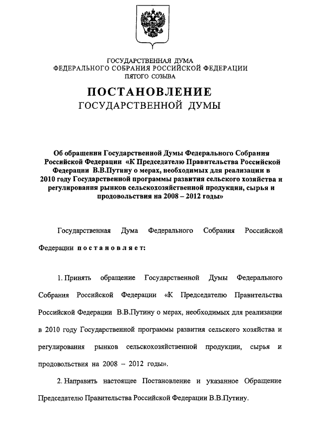 ПОСТАНОВЛЕНИЕ ГД ФС РФ от 12.03.2010 N 3332-5 ГД
