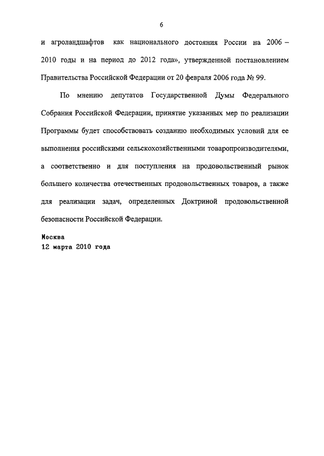 "ОБ ОБРАЩЕНИИ ГОСУДАРСТВЕННОЙ ДУМЫ ФЕДЕРАЛЬНОГО СОБРАНИЯ РОССИЙСКОЙ ФЕДЕРАЦИИ "К ПРЕДСЕДАТЕЛЮ ПРАВИТЕЛЬСТВА РОССИЙСКОЙ ФЕДЕРАЦИИ В.В. ПУТИНУ О МЕРАХ, НЕОБХОДИМЫХ ДЛЯ РЕАЛИЗАЦИИ В 2010 ГОДУ ГОСУДАРСТВЕННОЙ ПРОГРАММЫ РАЗВИТИЯ СЕЛЬСКОГО ХОЗЯЙСТВА И РЕГУЛИРОВАНИЯ РЫНКОВ СЕЛЬСКОХОЗЯЙСТВЕННОЙ ПРОДУКЦИИ, СЫРЬЯ И ПРОДОВОЛЬСТВИЯ НА 2008 - 2012 ГОДЫ"
