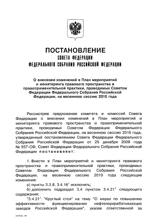 "О ВНЕСЕНИИ ИЗМЕНЕНИЙ В ПЛАН МЕРОПРИЯТИЙ И МОНИТОРИНГА ПРАВОВОГО