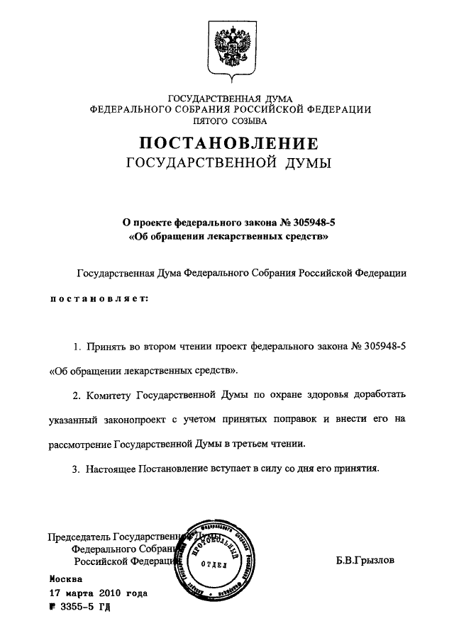 ПОСТАНОВЛЕНИЕ ГД ФС РФ от 17.03.2010 N 3355-5 ГД
