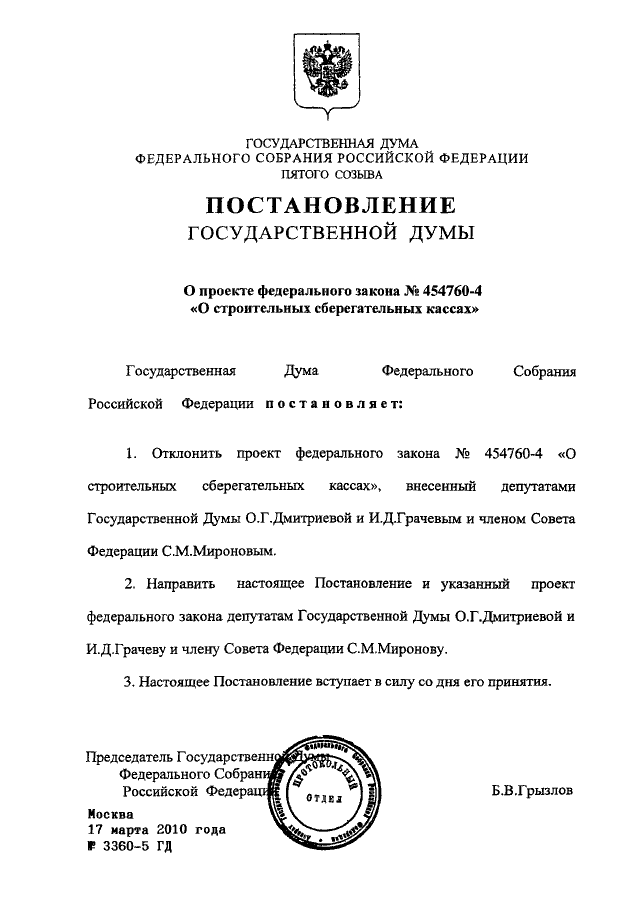ПОСТАНОВЛЕНИЕ ГД ФС РФ от 17.03.2010 N 3360-5 ГД
