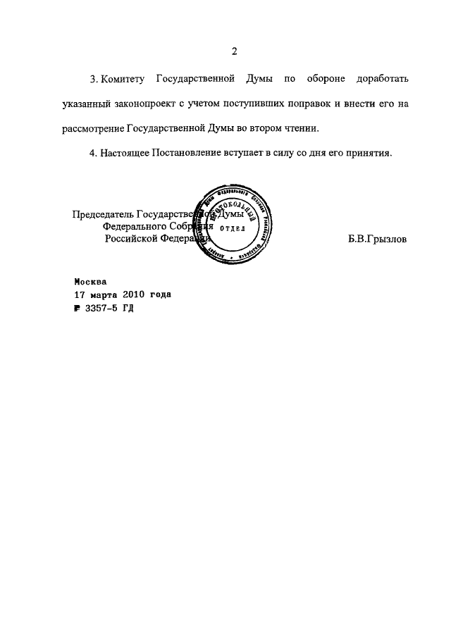 ПОСТАНОВЛЕНИЕ ГД ФС РФ от 17.03.2010 N 3357-5 ГД