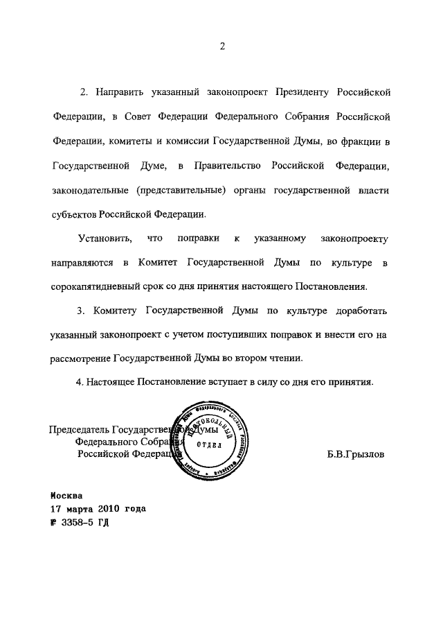 ПОСТАНОВЛЕНИЕ ГД ФС РФ от 17.03.2010 N 3358-5 ГД