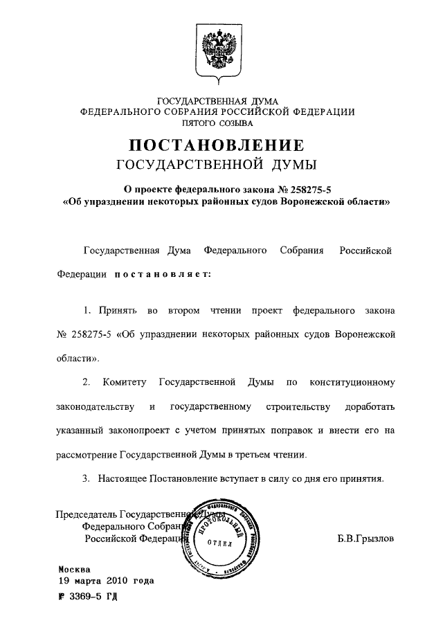 ПОСТАНОВЛЕНИЕ ГД ФС РФ от 19.03.2010 N 3369-5 ГД
