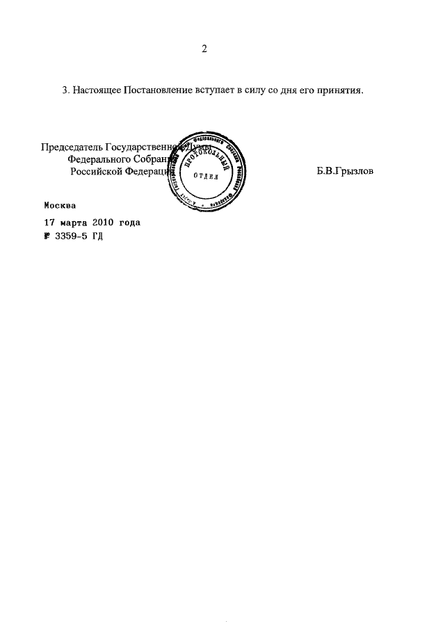 ПОСТАНОВЛЕНИЕ ГД ФС РФ от 17.03.2010 N 3359-5 ГД
