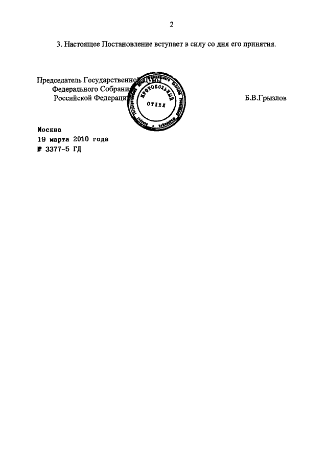 ПОСТАНОВЛЕНИЕ ГД ФС РФ от 19.03.2010 N 3377-5 ГД