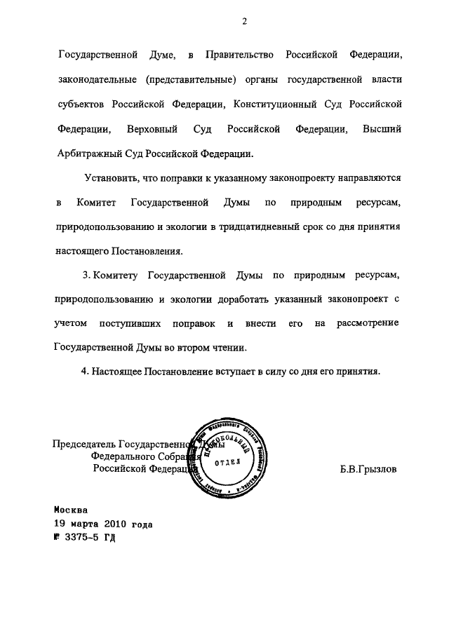 ПОСТАНОВЛЕНИЕ ГД ФС РФ от 19.03.2010 N 3375-5 ГД