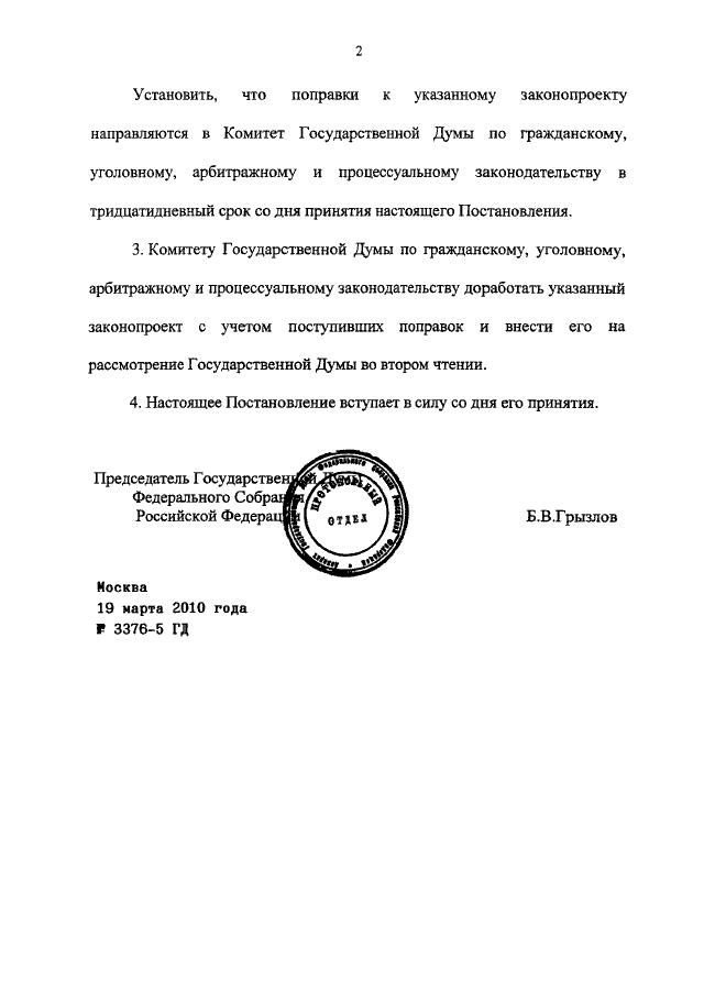 ПОСТАНОВЛЕНИЕ ГД ФС РФ от 19.03.2010 N 3376-5 ГД