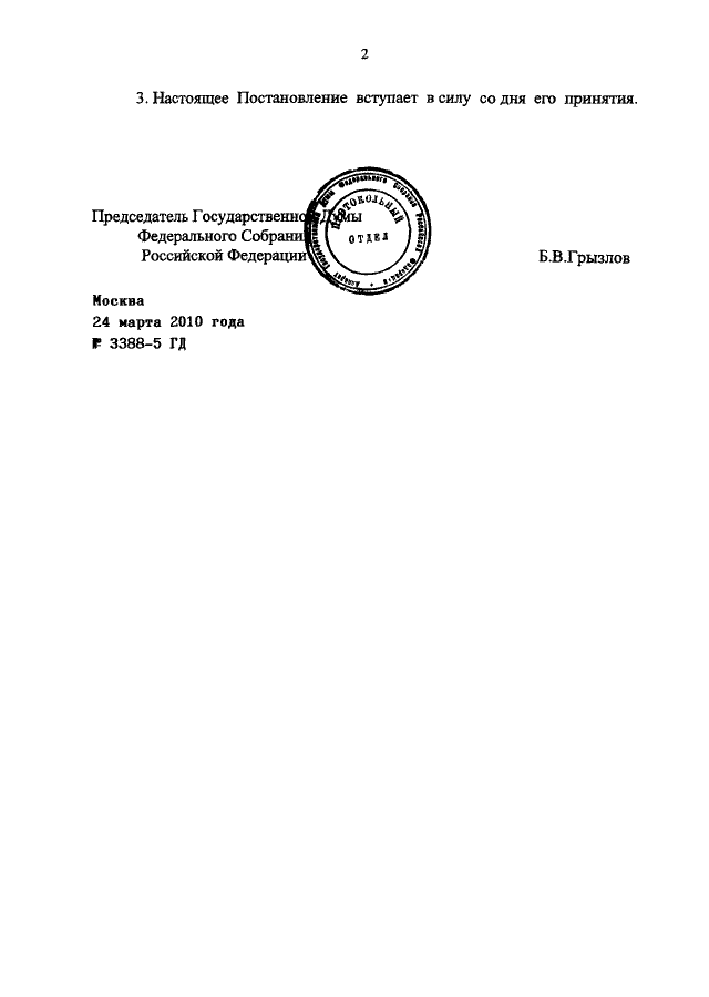 ПОСТАНОВЛЕНИЕ ГД ФС РФ от 24.03.2010 N 3388-5 ГД