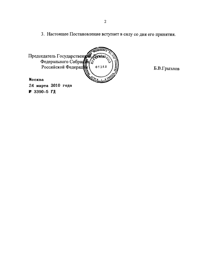 ПОСТАНОВЛЕНИЕ ГД ФС РФ от 24.03.2010 N 3390-5 ГД