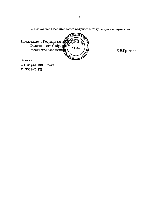 ПОСТАНОВЛЕНИЕ ГД ФС РФ от 24.03.2010 N 3389-5 ГД