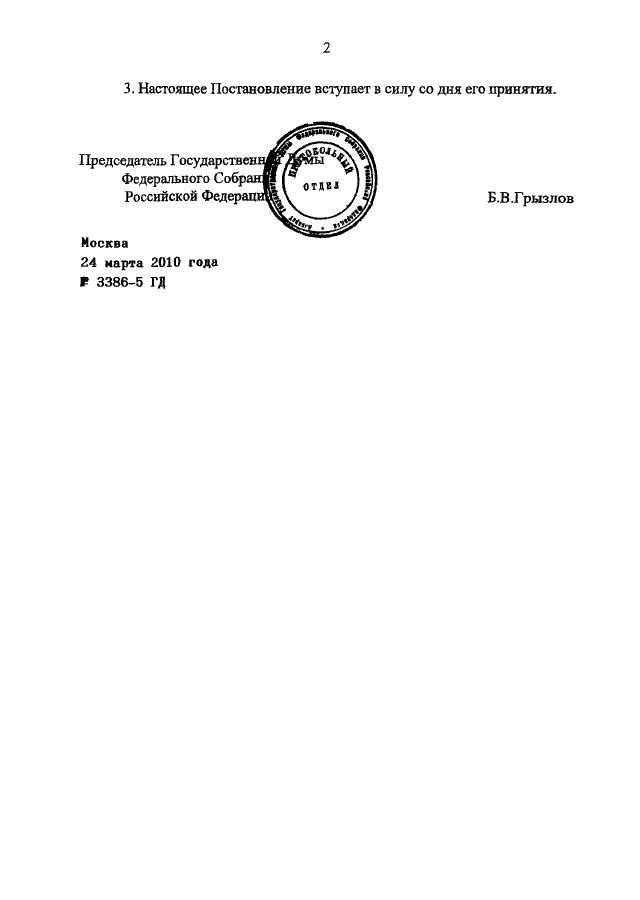 ПОСТАНОВЛЕНИЕ ГД ФС РФ от 24.03.2010 N 3386-5 ГД