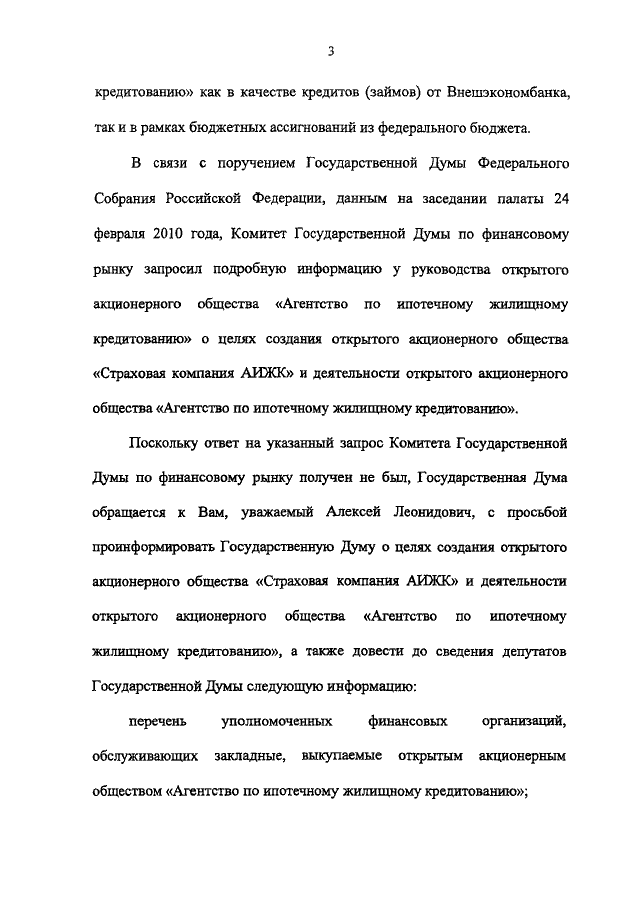 "О ПАРЛАМЕНТСКОМ ЗАПРОСЕ ГОСУДАРСТВЕННОЙ ДУМЫ ФЕДЕРАЛЬНОГО СОБРАНИЯ РОССИЙСКОЙ ФЕДЕРАЦИИ ЗАМЕСТИТЕЛЮ ПРЕДСЕДАТЕЛЯ ПРАВИТЕЛЬСТВА РОССИЙСКОЙ ФЕДЕРАЦИИ - МИНИСТРУ ФИНАНСОВ РОССИЙСКОЙ ФЕДЕРАЦИИ А.Л. КУДРИНУ "О ЦЕЛЯХ СОЗДАНИЯ ОТКРЫТОГО АКЦИОНЕРНОГО ОБЩЕСТВА "СТРАХОВАЯ КОМПАНИЯ АИЖК" И ДЕЯТЕЛЬНОСТИ ОТКРЫТОГО АКЦИОНЕРНОГО ОБЩЕСТВА "АГЕНТСТВО ПО ИПОТЕЧНОМУ ЖИЛИЩНОМУ КРЕДИТОВАНИЮ"
