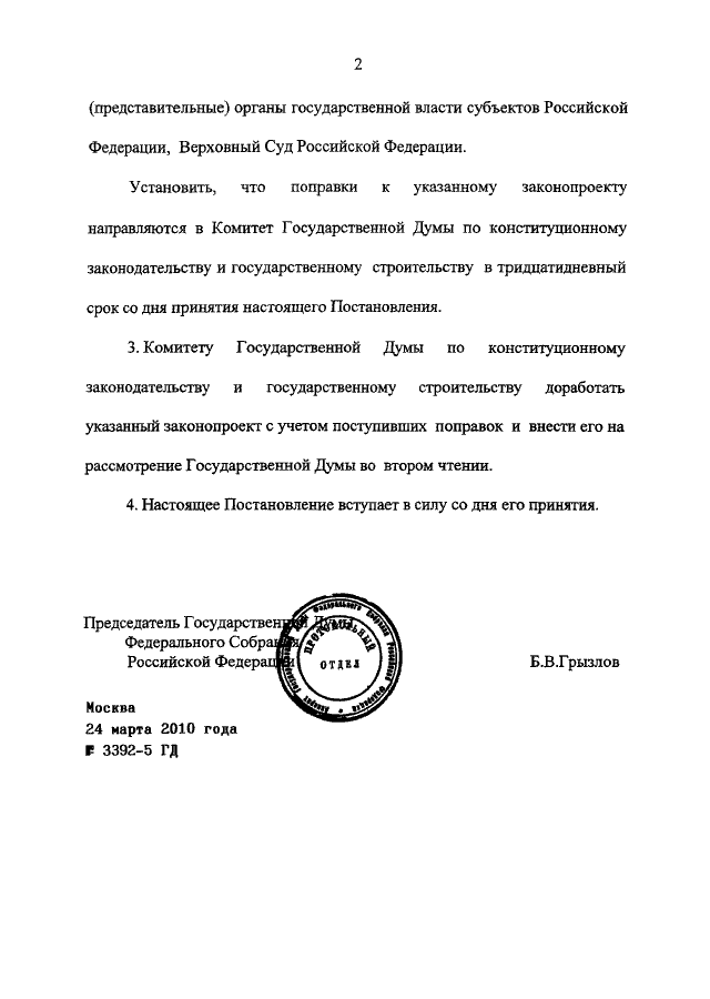 ПОСТАНОВЛЕНИЕ ГД ФС РФ от 24.03.2010 N 3392-5 ГД