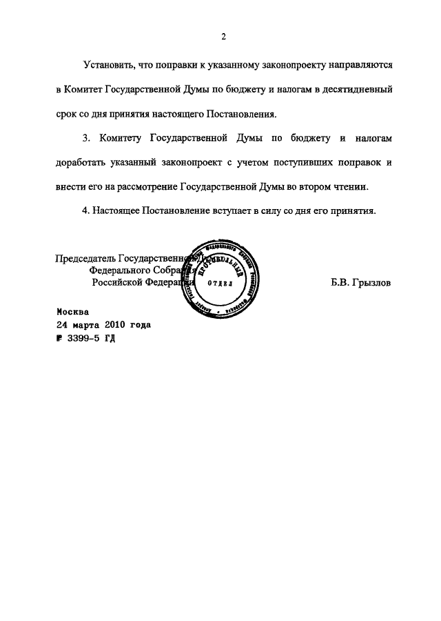 ПОСТАНОВЛЕНИЕ ГД ФС РФ от 24.03.2010 N 3399-5 ГД
