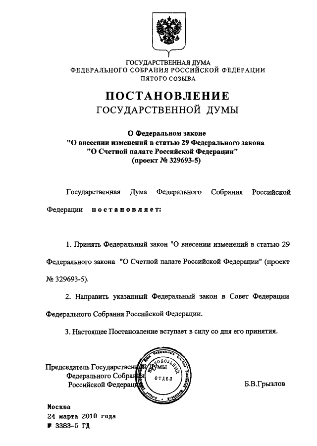 ПОСТАНОВЛЕНИЕ ГД ФС РФ от 24.03.2010 N 3383-5 ГД