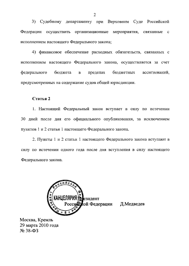 ФЕДЕРАЛЬНЫЙ ЗАКОН от 29.03.2010 N 38-ФЗ