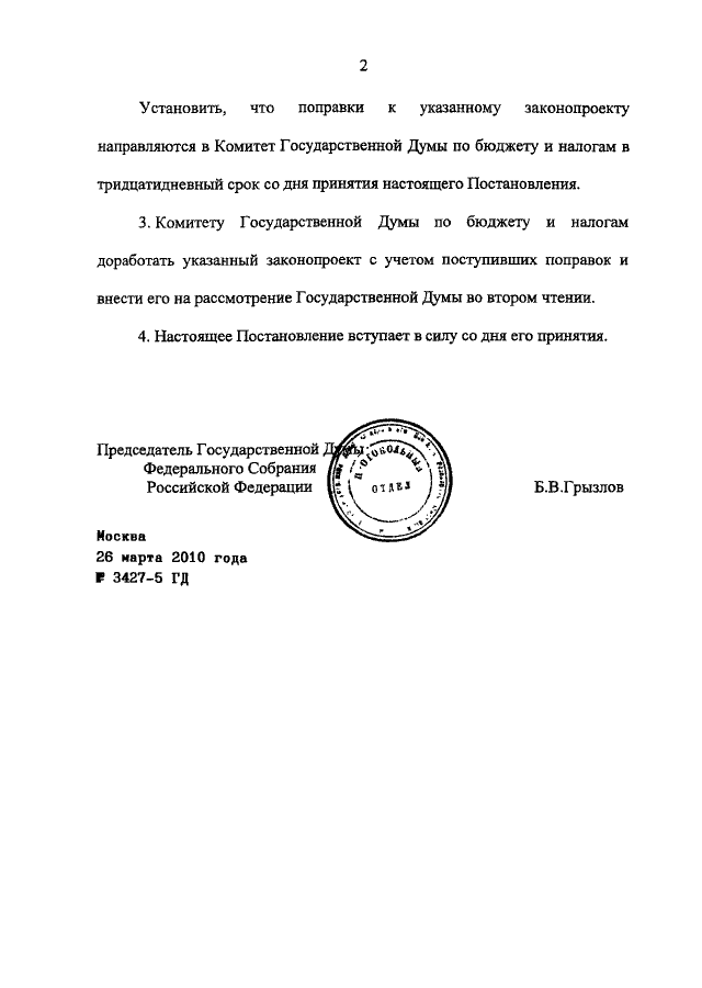 ПОСТАНОВЛЕНИЕ ГД ФС РФ от 26.03.2010 N 3427-5 ГД