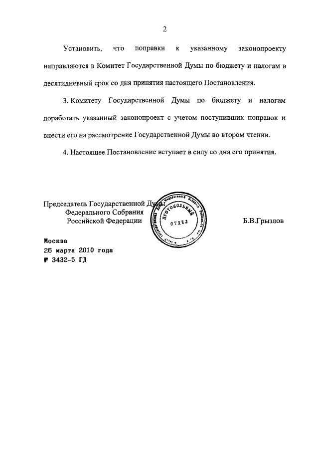 ПОСТАНОВЛЕНИЕ ГД ФС РФ от 26.03.2010 N 3432-5 ГД