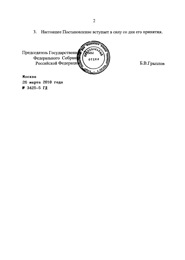 ПОСТАНОВЛЕНИЕ ГД ФС РФ от 26.03.2010 N 3425-5 ГД