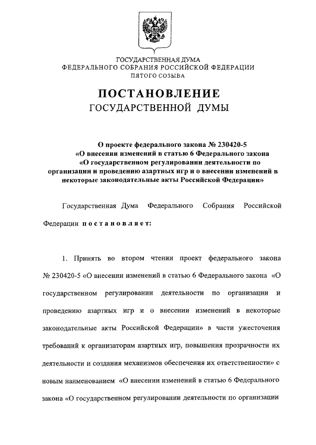 ДЕЯТЕЛЬНОСТИ ПО ОРГАНИЗАЦИИ И ПРОВЕДЕНИЮ АЗАРТНЫХ ИГР И О ВНЕСЕНИИ