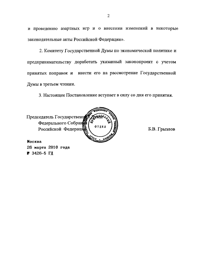 ПОСТАНОВЛЕНИЕ ГД ФС РФ от 26.03.2010 N 3426-5 ГД
