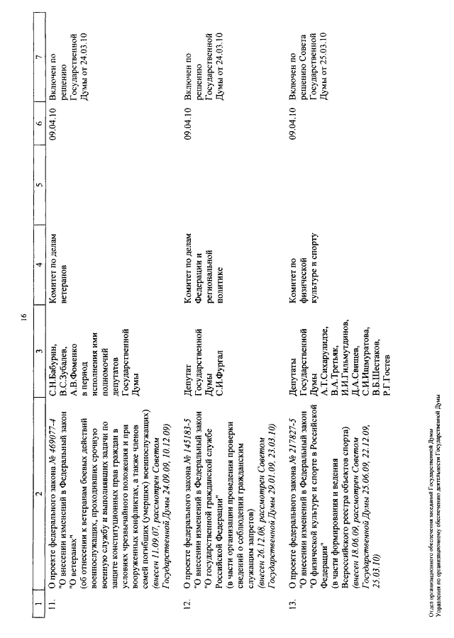 "О КАЛЕНДАРЕ РАССМОТРЕНИЯ ВОПРОСОВ ГОСУДАРСТВЕННОЙ ДУМОЙ С 7 ПО 23 АПРЕЛЯ 2010 ГОДА"