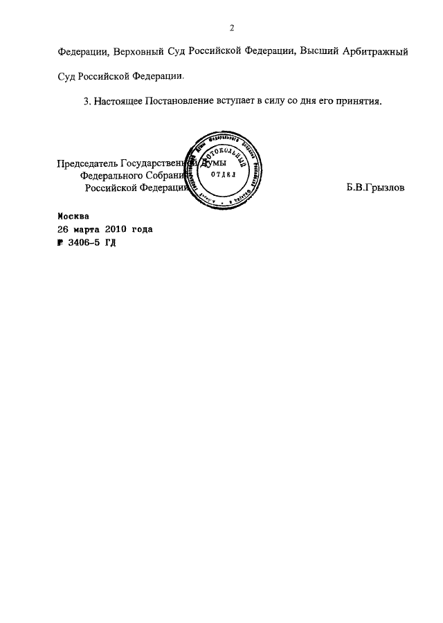 ПОСТАНОВЛЕНИЕ ГД ФС РФ от 26.03.2010 N 3406-5 ГД