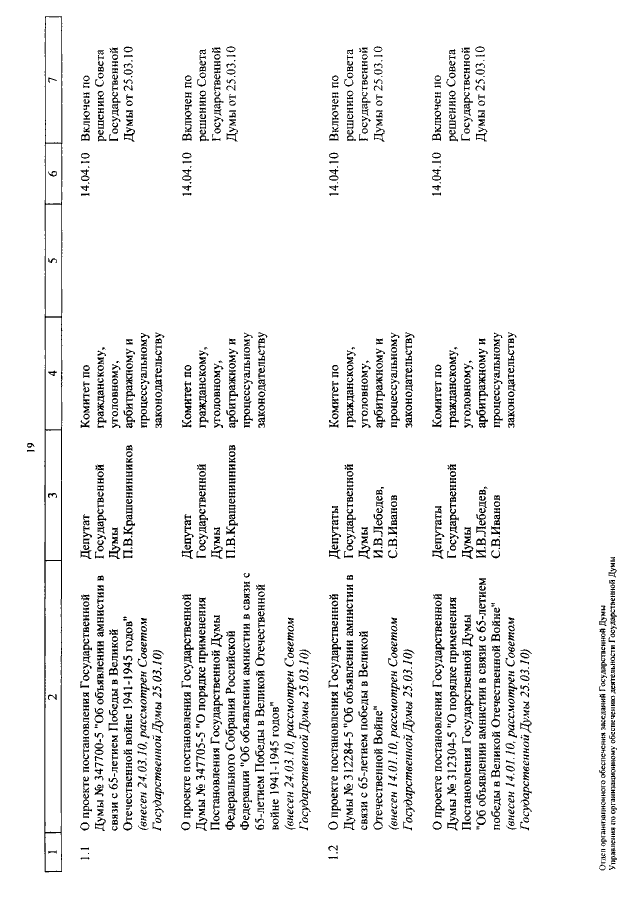 "О КАЛЕНДАРЕ РАССМОТРЕНИЯ ВОПРОСОВ ГОСУДАРСТВЕННОЙ ДУМОЙ С 7 ПО 23 АПРЕЛЯ 2010 ГОДА"