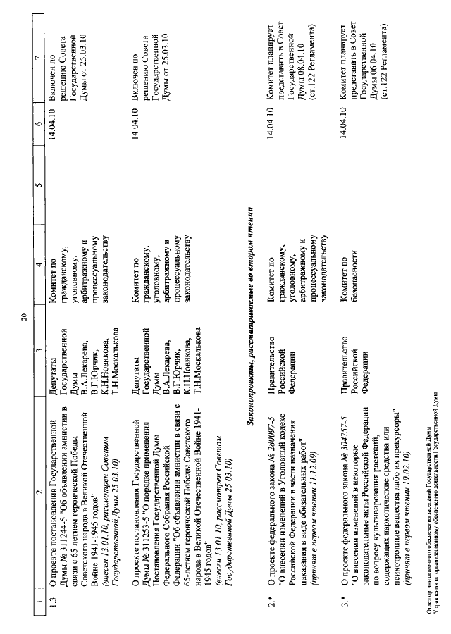 "О КАЛЕНДАРЕ РАССМОТРЕНИЯ ВОПРОСОВ ГОСУДАРСТВЕННОЙ ДУМОЙ С 7 ПО 23 АПРЕЛЯ 2010 ГОДА"