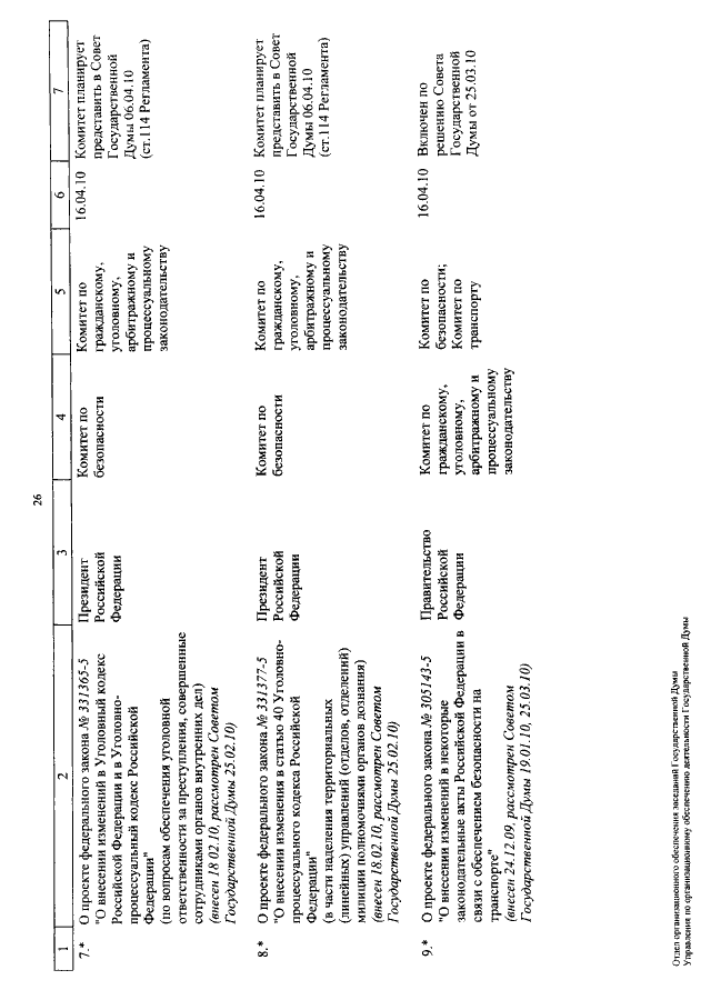 "О КАЛЕНДАРЕ РАССМОТРЕНИЯ ВОПРОСОВ ГОСУДАРСТВЕННОЙ ДУМОЙ С 7 ПО 23 АПРЕЛЯ 2010 ГОДА"