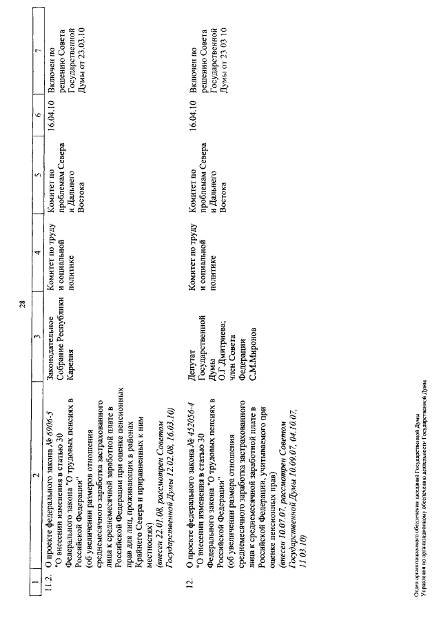 "О КАЛЕНДАРЕ РАССМОТРЕНИЯ ВОПРОСОВ ГОСУДАРСТВЕННОЙ ДУМОЙ С 7 ПО 23 АПРЕЛЯ 2010 ГОДА"