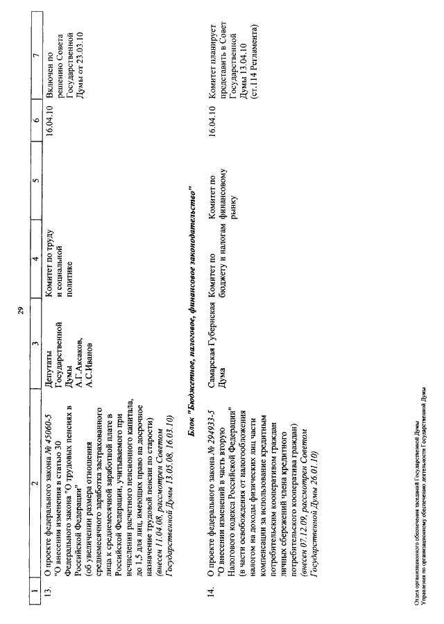 "О КАЛЕНДАРЕ РАССМОТРЕНИЯ ВОПРОСОВ ГОСУДАРСТВЕННОЙ ДУМОЙ С 7 ПО 23 АПРЕЛЯ 2010 ГОДА"