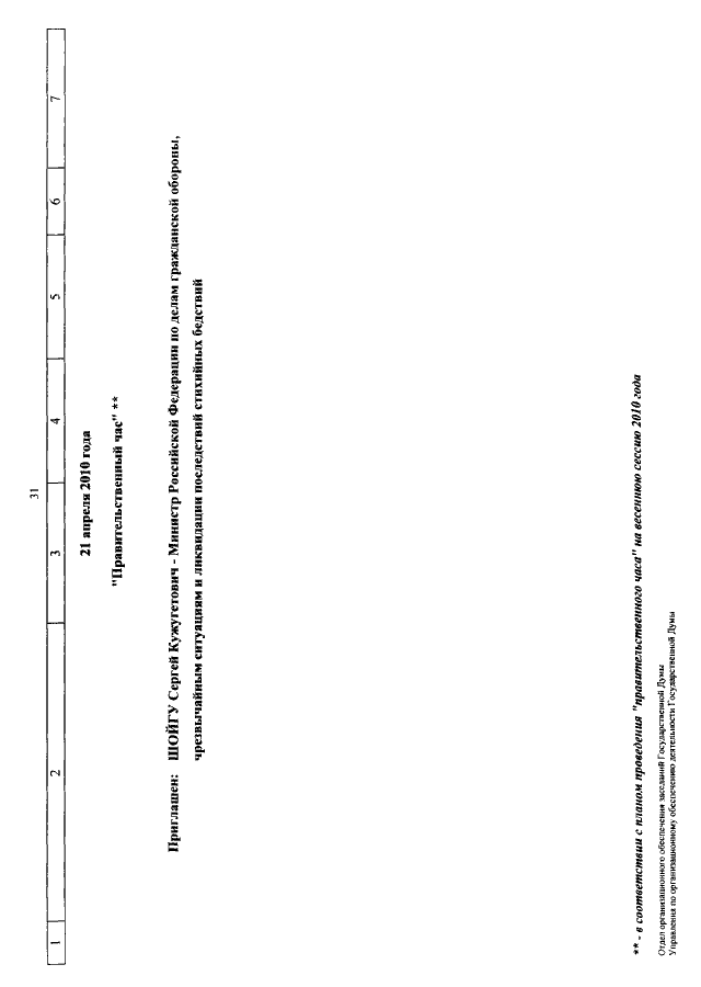 "О КАЛЕНДАРЕ РАССМОТРЕНИЯ ВОПРОСОВ ГОСУДАРСТВЕННОЙ ДУМОЙ С 7 ПО 23 АПРЕЛЯ 2010 ГОДА"