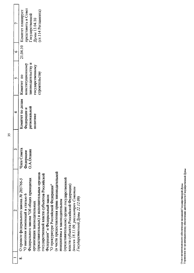 "О КАЛЕНДАРЕ РАССМОТРЕНИЯ ВОПРОСОВ ГОСУДАРСТВЕННОЙ ДУМОЙ С 7 ПО 23 АПРЕЛЯ 2010 ГОДА"