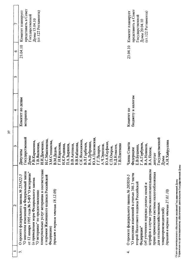 "О КАЛЕНДАРЕ РАССМОТРЕНИЯ ВОПРОСОВ ГОСУДАРСТВЕННОЙ ДУМОЙ С 7 ПО 23 АПРЕЛЯ 2010 ГОДА"