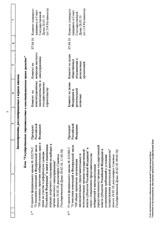 "О КАЛЕНДАРЕ РАССМОТРЕНИЯ ВОПРОСОВ ГОСУДАРСТВЕННОЙ ДУМОЙ С 7 ПО 23 АПРЕЛЯ 2010 ГОДА"