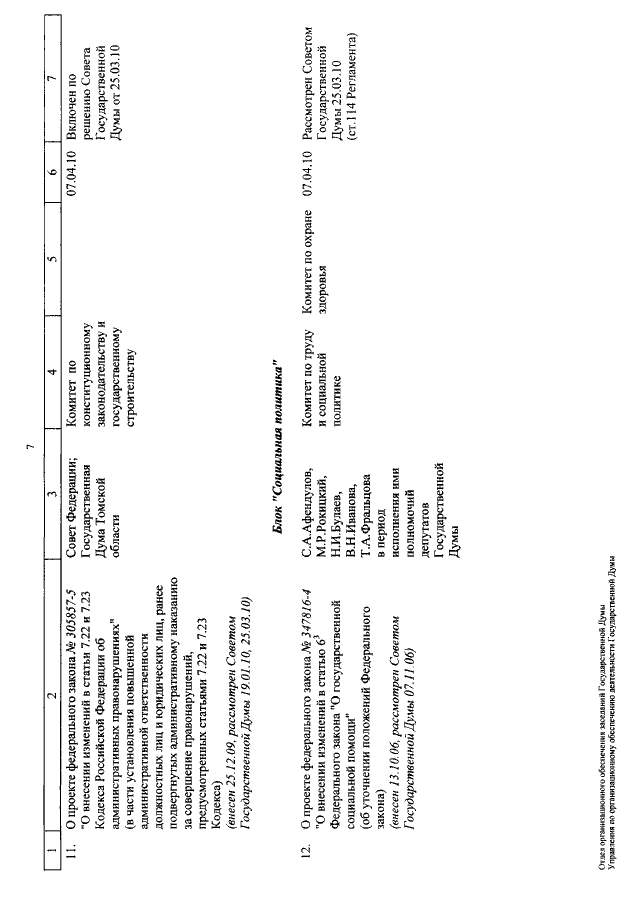 "О КАЛЕНДАРЕ РАССМОТРЕНИЯ ВОПРОСОВ ГОСУДАРСТВЕННОЙ ДУМОЙ С 7 ПО 23 АПРЕЛЯ 2010 ГОДА"