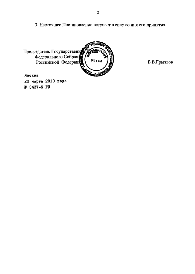 ПОСТАНОВЛЕНИЕ ГД ФС РФ от 26.03.2010 N 3437-5 ГД