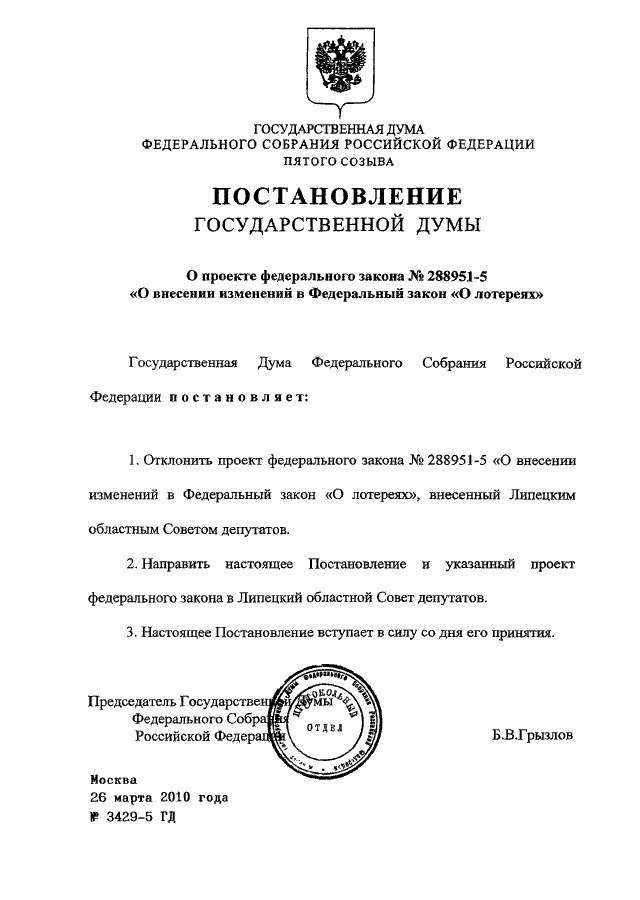 ПОСТАНОВЛЕНИЕ ГД ФС РФ от 26.03.2010 N 3429-5 ГД