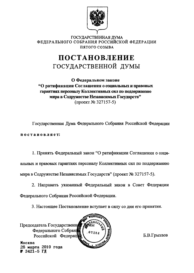 ПОСТАНОВЛЕНИЕ ГД ФС РФ от 26.03.2010 N 3421-5 ГД