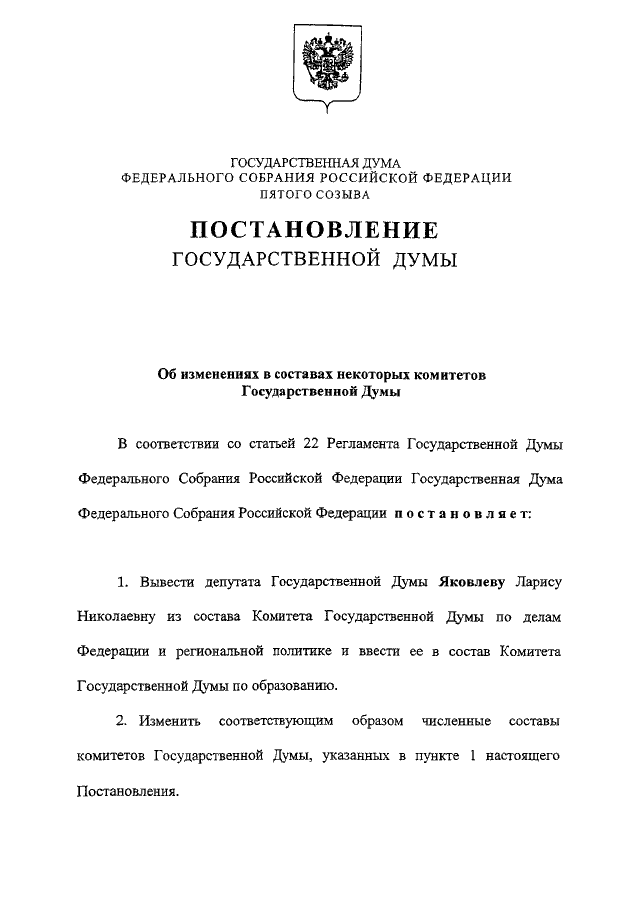 "ОБ ИЗМЕНЕНИЯХ В СОСТАВАХ НЕКОТОРЫХ КОМИТЕТОВ ГОСУДАРСТВЕННОЙ ДУМЫ"