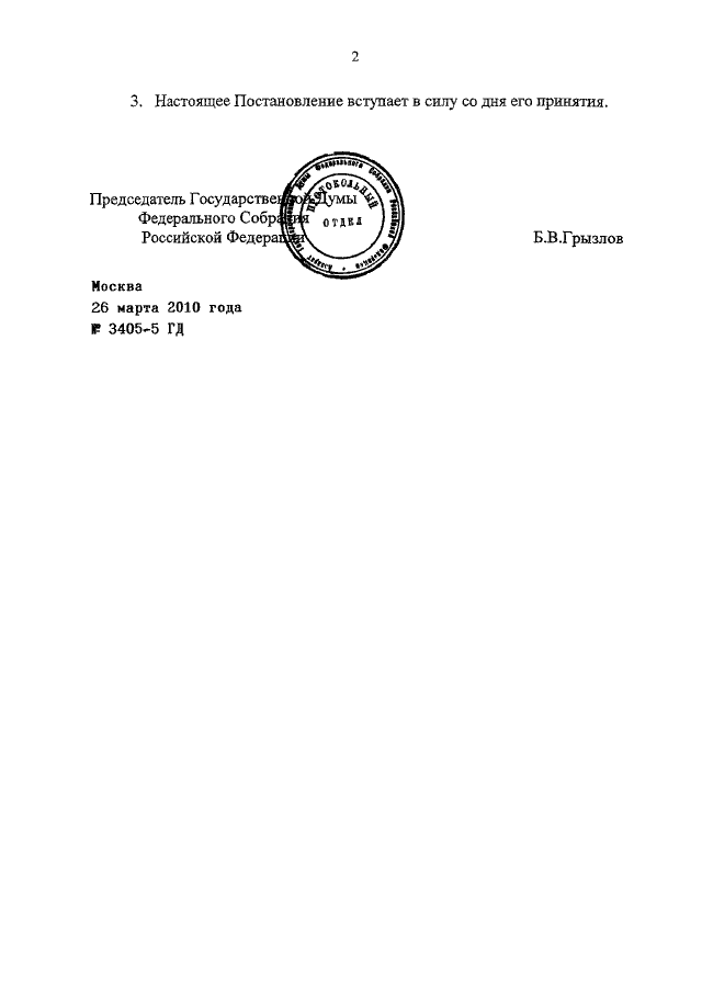 ПОСТАНОВЛЕНИЕ ГД ФС РФ от 26.03.2010 N 3405-5 ГД