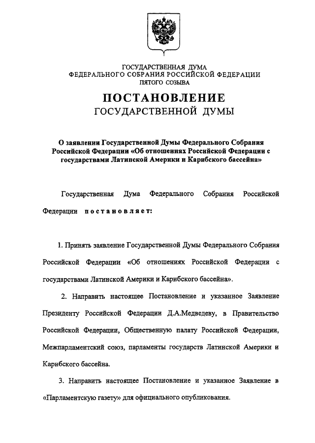 "О ЗАЯВЛЕНИИ ГОСУДАРСТВЕННОЙ ДУМЫ ФЕДЕРАЛЬНОГО СОБРАНИЯ РОССИЙСКОЙ ФЕДЕРАЦИИ "ОБ ОТНОШЕНИЯХ РОССИЙСКОЙ ФЕДЕРАЦИИ С ГОСУДАРСТВАМИ ЛАТИНСКОЙ АМЕРИКИ И КАРИБСКОГО БАССЕЙНА"